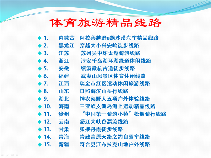 体育总局旅游局发布“十一体旅精品线路”