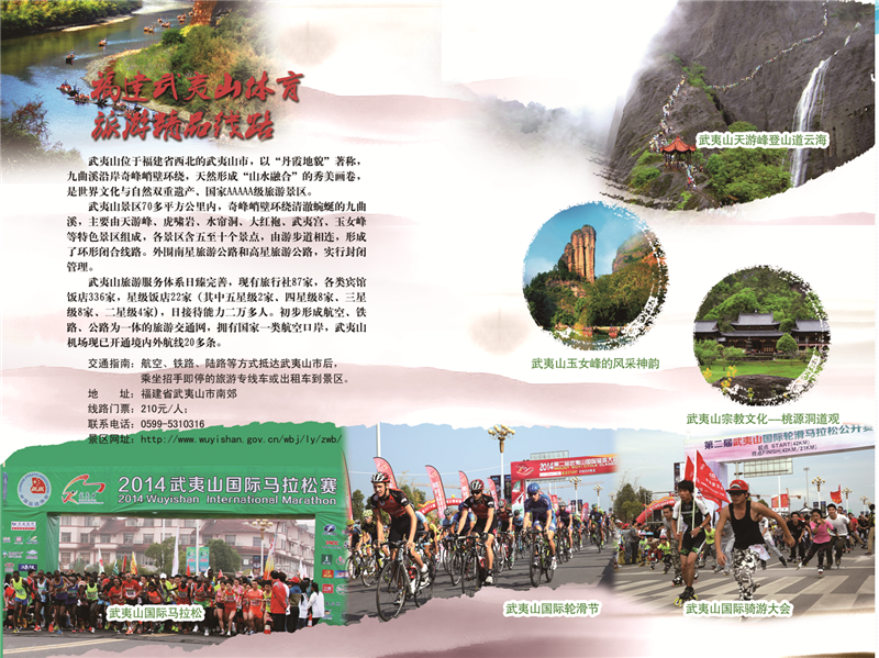 9月30日,国家体育总局和国家旅游局共同在京首次发布“十一黄金周体育旅游精品线路”。共有内蒙古阿拉善越野e族沙漠汽车航空线路、穿越大小兴安岭徒步线路、苏州吴中环太湖骑游线路、浙江千岛湖绿道休闲线路、安徽徽杭古道徒步线路、武夷山风景区体育休闲线路、瑞金市红区运动休闲旅游线路、日照海滨山岳行线路、湖北神农架野人五项户外体验线路、海南三亚蜈支洲旅游线路、“中国第一骑游小镇”松烟骑行线路、怒江大峡谷漂流线路、张掖丹霞徒步线路、青藏高原天路之约自驾车线路以及新疆·奇台江布拉克山地户外线路15条精品线路。