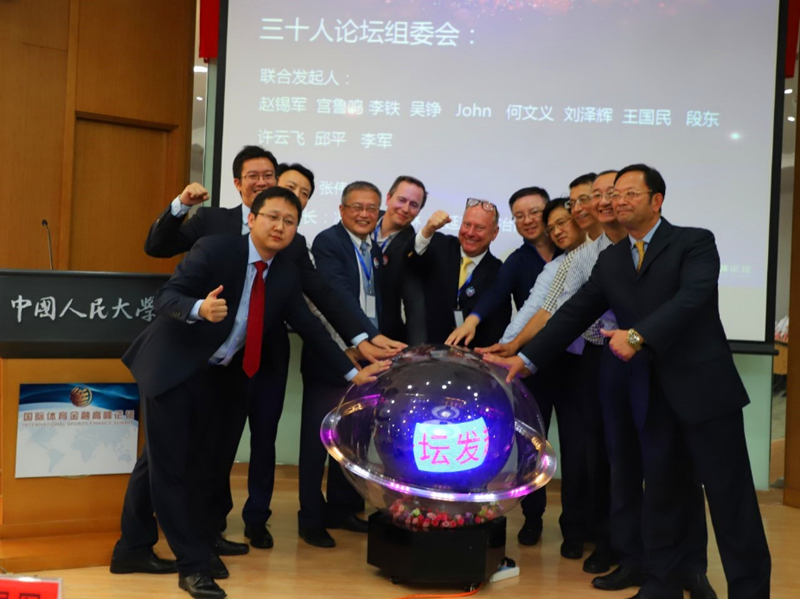 论坛期间,中国人民大学金融校友俱乐部副秘书长冯会波宣布“体育产业金融三十人论坛”成立。他表示,“三十人论坛的使命是推动中国体育金融的产融结合,推动体育产业的国际化。”此次论坛的主要目的为: 打造国际体育金融领域权威的智库平台,成立中国体育金融研究院,为体育提供经验支持与理论支撑;发起成立“中国金融产业创新基金”,推动体育产业与金融深度结合,让资本与产业实现良性互动;在国外设立分支机构,搭建国际教育平台,推动共享全球智慧,引领行业发展。