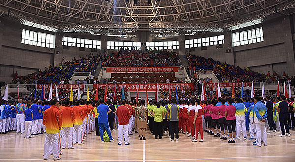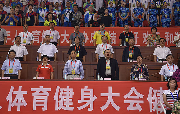 第三届全国老年人体育健身大会健身球操交流活动开幕。(于红立摄)
